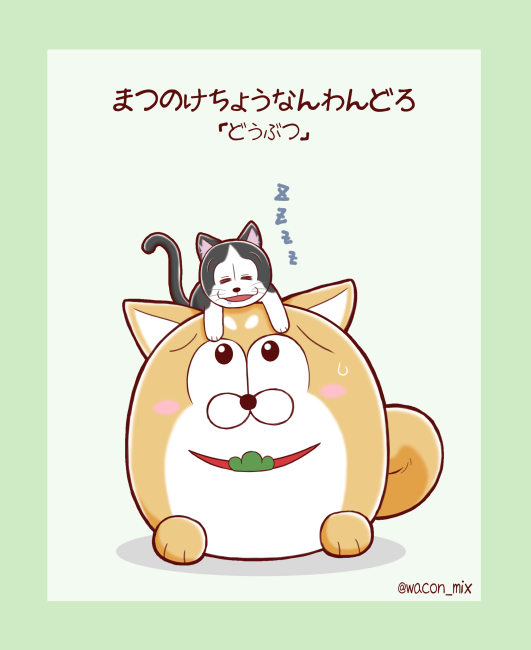 23 53 お題【動物】 お久しぶりの参加。 イッヌとヌッコ。 #松野家長男版深夜のお絵描き60分一本勝負 20/04/26 23:41
