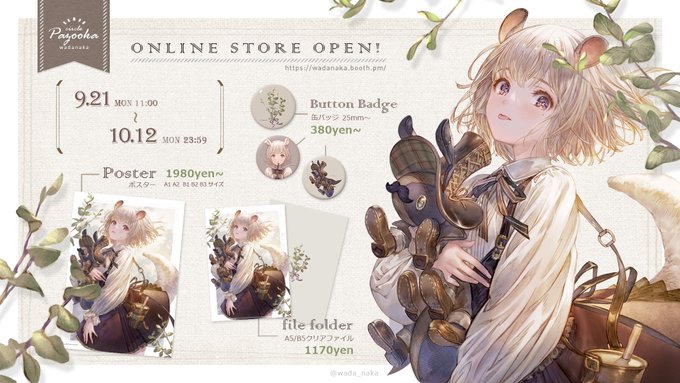 ポスター・缶バッジ・クリアファイルの三種類のグッズを作りました。本日9/21(月)~10/12(月)いっぱいまでの間、BOOTHにて販売します。 どうぞよろしくお願い致します! wadanaka.booth.pm #エアコミティア133 #エアコミティア_通販