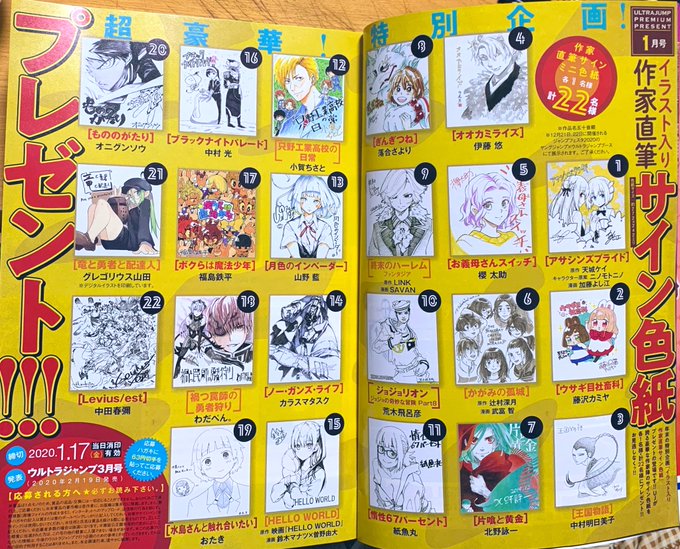 9 13 【お知らせ】 昨日発売のウルトラジャンプ1月号の 色紙読者プレゼントにオイラも描かせていただきました〜♪ ご興味ある方はぜひぜひご応募くださいませ〜╰(*´︶`*)╯ #ウルトラジャンプ #禍つ罠師の勇者狩り 19/12/20 23:30