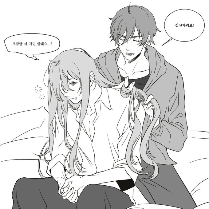 막 일어나서 비몽사몽한 와타루 머리카락 빗겨주는 토모야입니다. . . #토모와타_전력_60분
