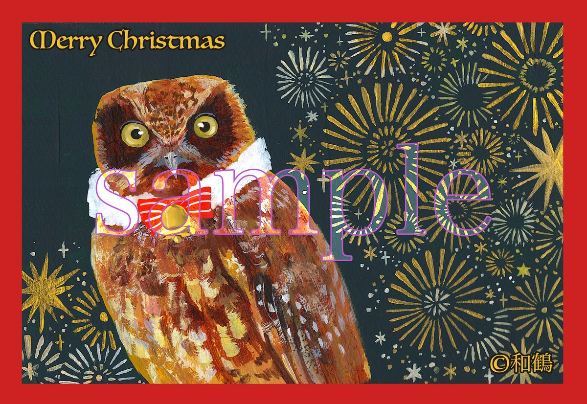 ho-ho-さん(@hohozakka )にて #春のフクロウ展 が始まってます!最初は原画ポストカードを3枚置かせていただきました〜 「春のお届けもの1」原画ポストカード 雛のフクロウで入学祝いを描きました。真っ赤なランドセルに学校の帽子、新しい日が楽しみな雛フクロウです。 #春のフクロウ展 #和鶴