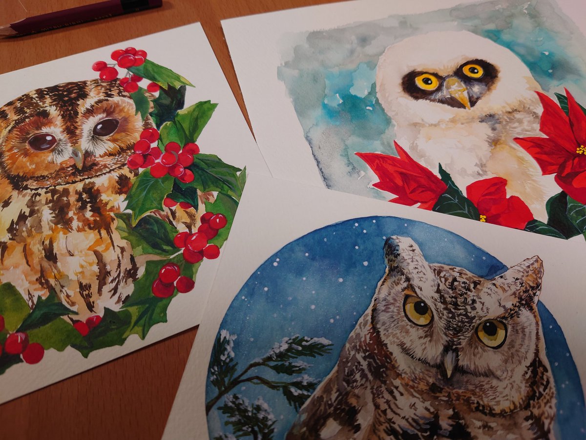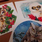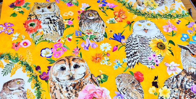 #今月描いた絵を晒そう 今月は公募展と原画展が続いて、過去1番フクロウと花を描きまくった気がする