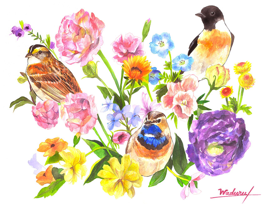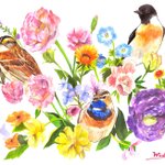 #水彩の魔術師の集い 💐私は花鳥の魔術師🦉 色鮮やかな花を鳥たちに添えて描き出す🎨