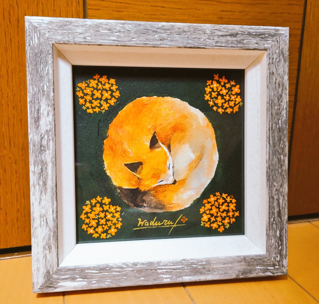 0 5 「陶酔の狐」 水彩画 15.7×15.7cm 金木犀の花言葉:陶酔 #いきもにあ2022 #水彩画 #狐 22/10/24 18:19