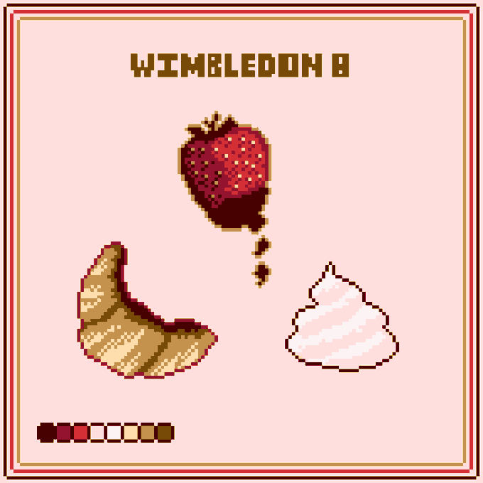 2nd Iteration of a "Strawberry Tart" palette that I'm putting together. Decided to rename it "Wimbledon 8" because strawberries and cream are often found at Wimbledon, and is easier to pronounce . . . #pixelart #pixelartist #art #ArtistOnTwitter #pixels #ドット絵