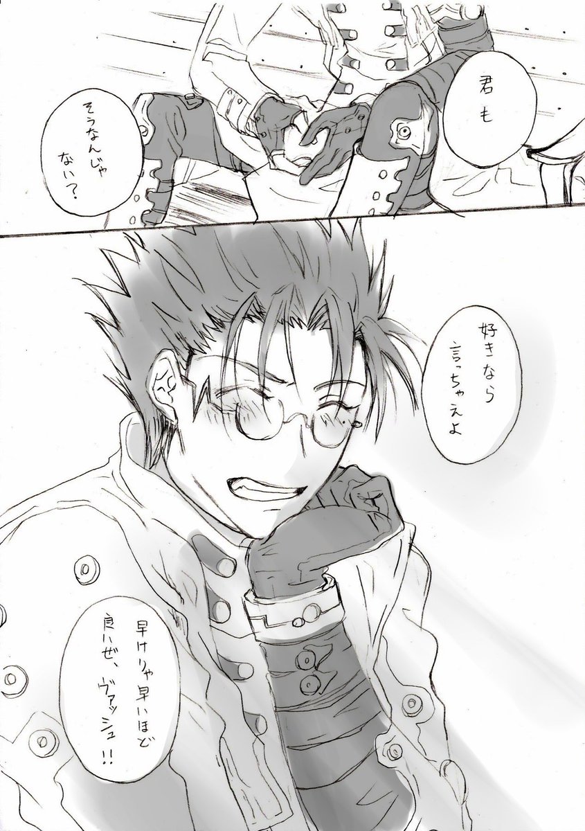 これは髪下ろしヴァッシュを練習しようとして コートの開き方どーなっとんねん! 義手外した袖どーなっとんねん! 傷跡どーなっとんねん! の三重苦で投げ出した落書き