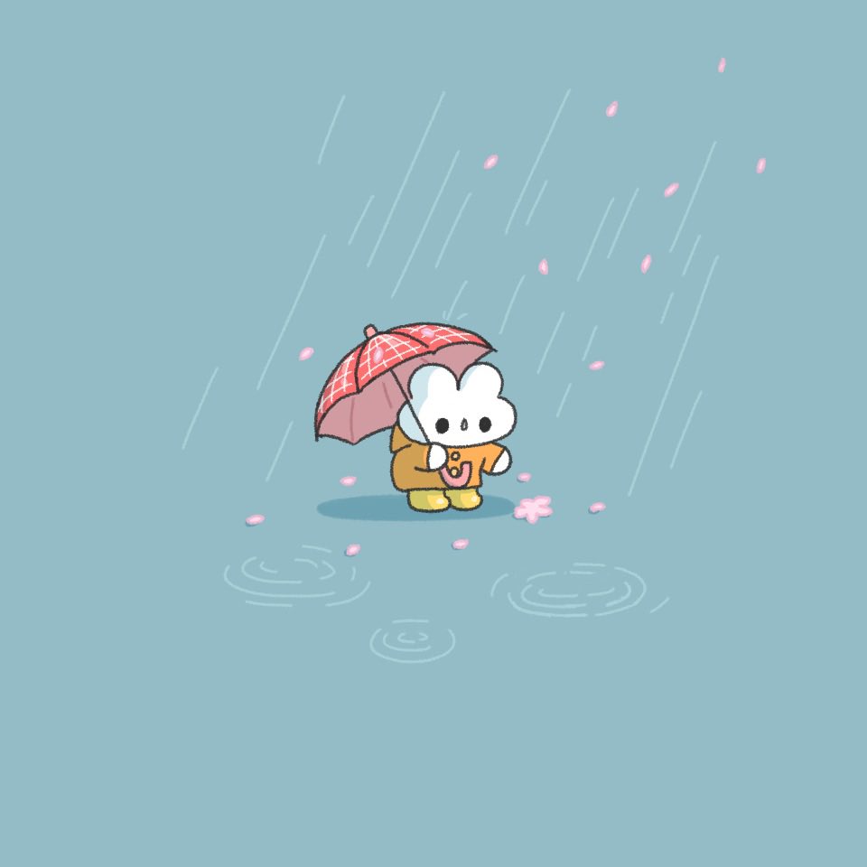 18 164 雨で桜散ってた〜 #わふわふうさお #illustration #イラスト #ゆるいイラスト 23/03/28 20:05