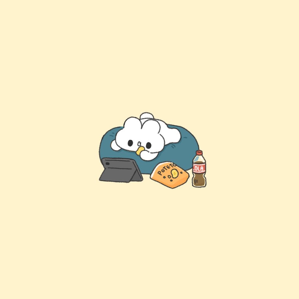 32 217 夜食へのお誘い #わふわふうさお #illustration #イラスト #ゆるいイラスト 23/03/22 20:10