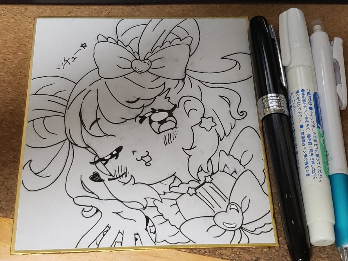色紙描いてみたけどやっぱ難しいな... 黒鉛とインクで紙が汚れまくったよ
