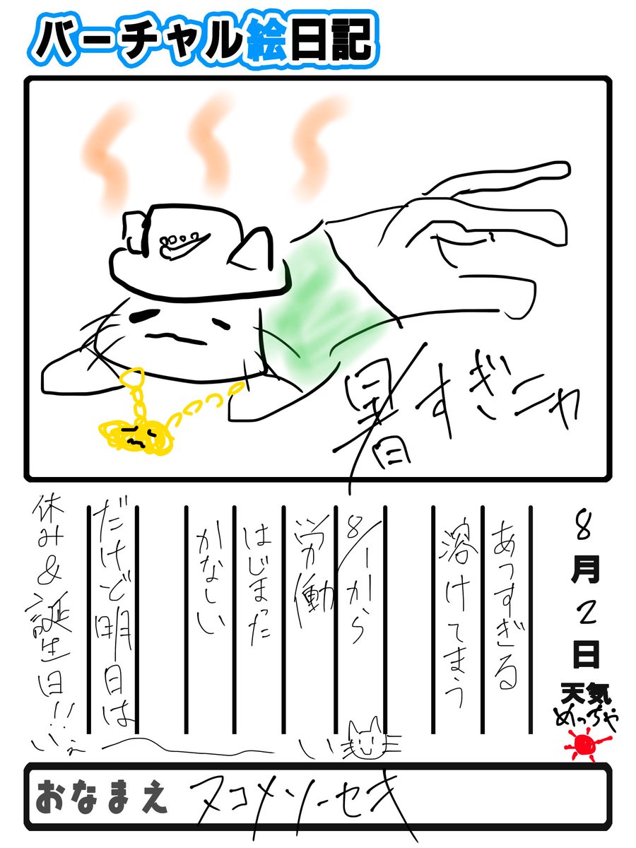 8/3、めでたいね😺 皆様のおかげでネコも歳をとりました #バーチャル絵日記