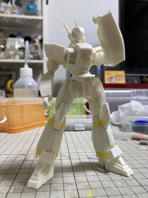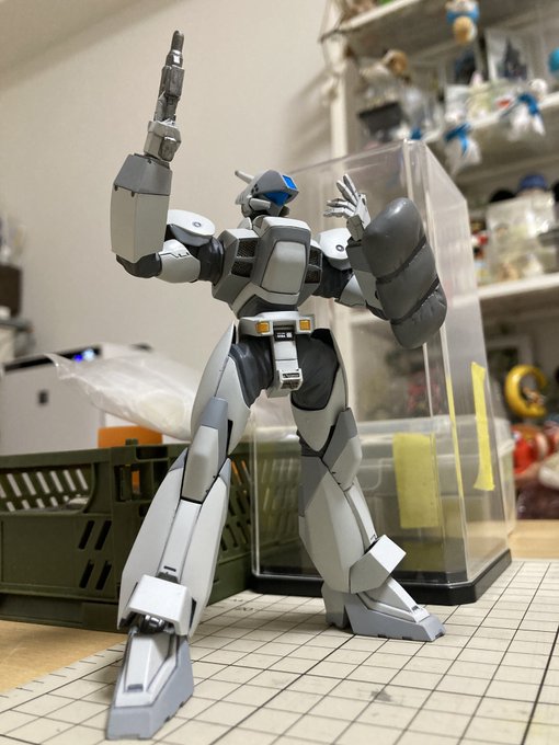 @kaerutarouko さん原型のスタンダード遂に完成 シールドは単行本12巻の訓練中の仕様を自作して差し替え式に カラリングも漫画版を参考に明るめのグレーでアレンジ 満足。 つづく #パトレイバー模型部 #篠原重工八王子工場