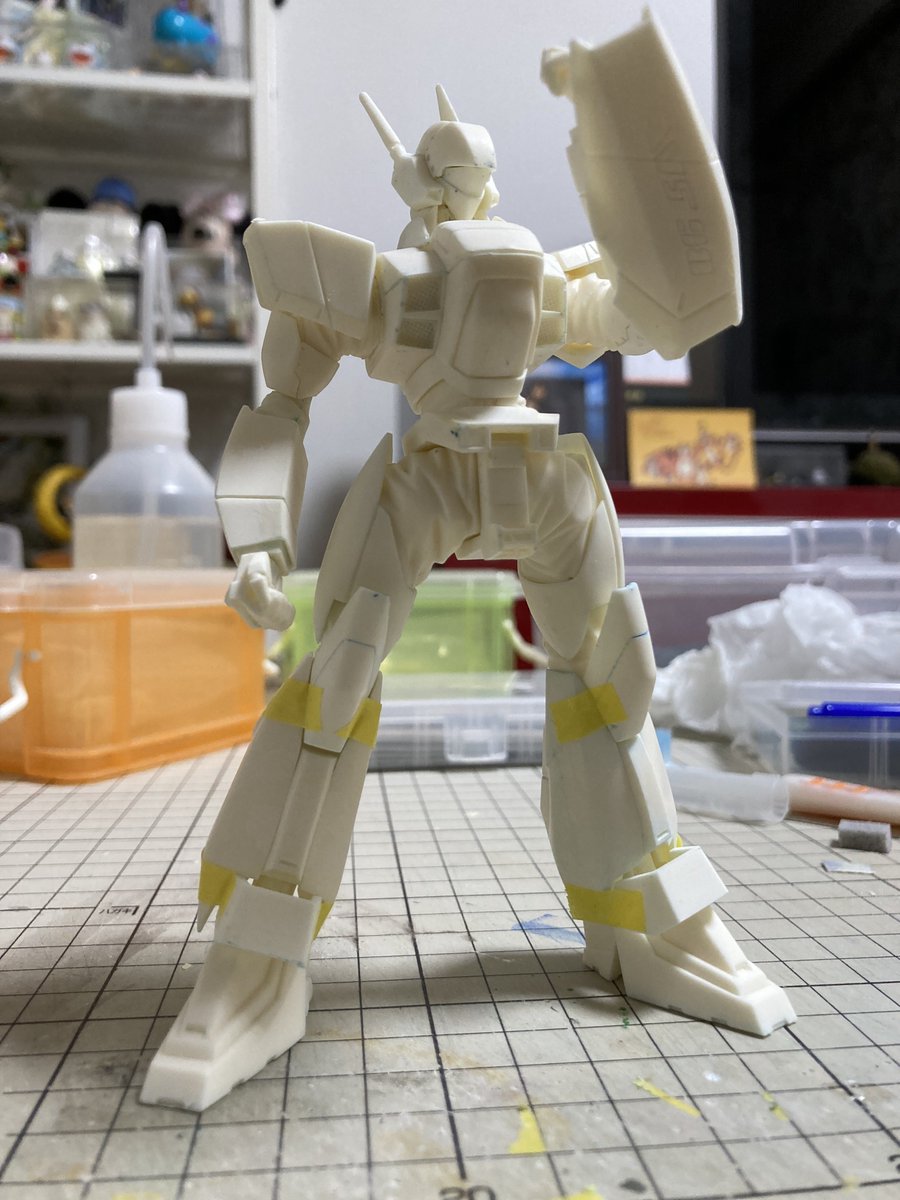 塗装1回目 カラリングのイメージはガンダムのロールアウトカラー 一旦組んで色味チェック 濃度のバラつき発見 次回フォローせねば 次回に向けてバラしてマスキング。 #クリエイターズワン #パトレイバー模型部 #篠原重工八王子工場