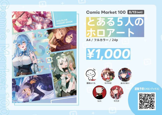 【C100】三期生イラストレーターの合同誌です! 色んなホロメンが描かれてます~とっても貴重です✨ コミケ当日は参加イラストレーターさんのブースそれぞれで頒布予定です。 👇通販はこちら👇 melonbooks.co.jp/detail/detail.… よろしくお願いします🖐️