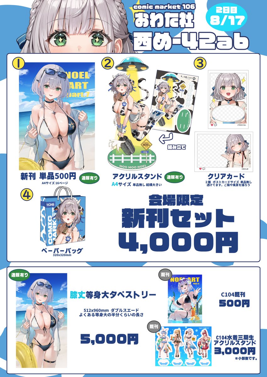 💪コミケ102のお品書きです💪 ノエル団長がいっぱい! 新刊セットは会場限定です。 よろしくお願いします!!! 💮通販情報 ◆新刊「NOEL ART part.4」 melonbooks.co.jp/detail/detail.… ◆マウスパッド melonbooks.co.jp/detail/detail.… ◆等身大タペストリー melonbooks.co.jp/detail/detail.…… twitter.com/i/web/status/1…