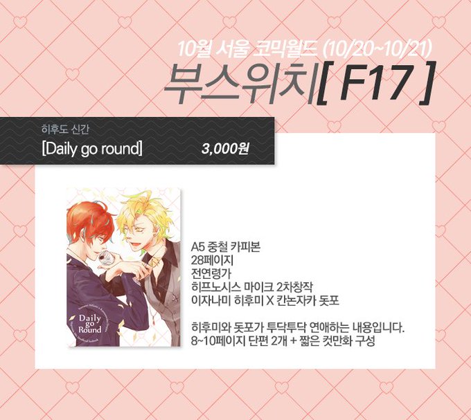 10월 서코에서 판매한 히후도 개인지[Daily go round], 포스타입에 유료발행 했습니다. 잘 부탁 드립니다 😊 msiesta-info.postype.com/post/2655006