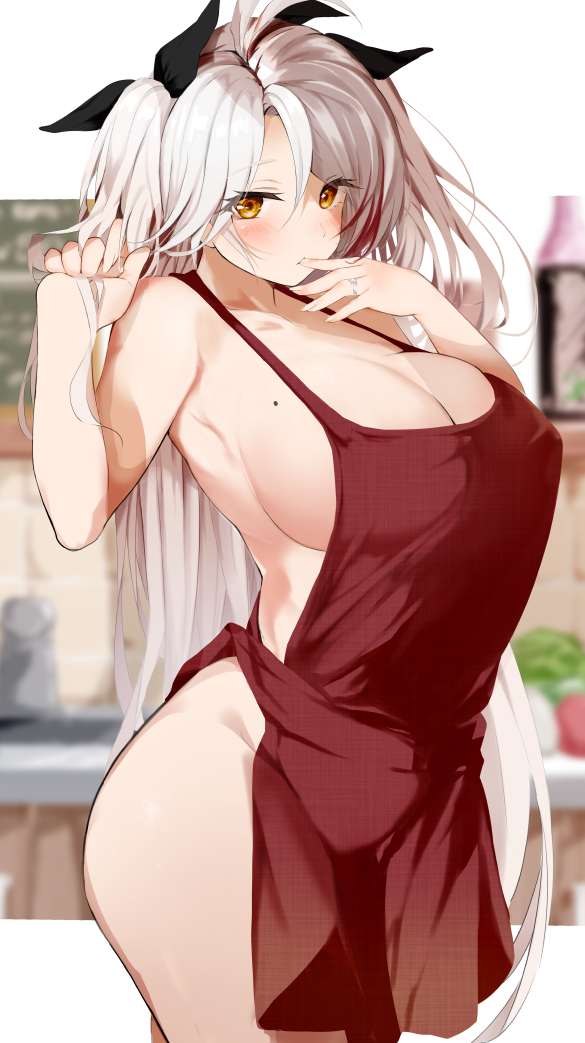 オイゲンさんに裸エプロン着てもらった絵(^ω^) #アズールレーン