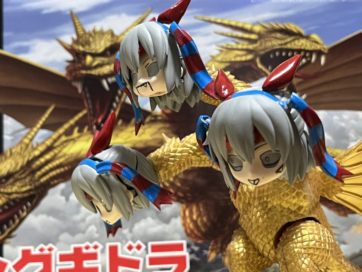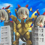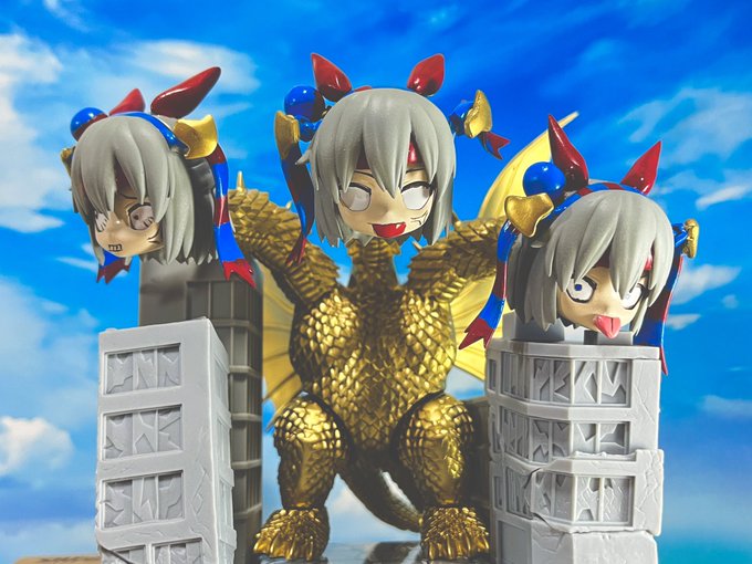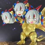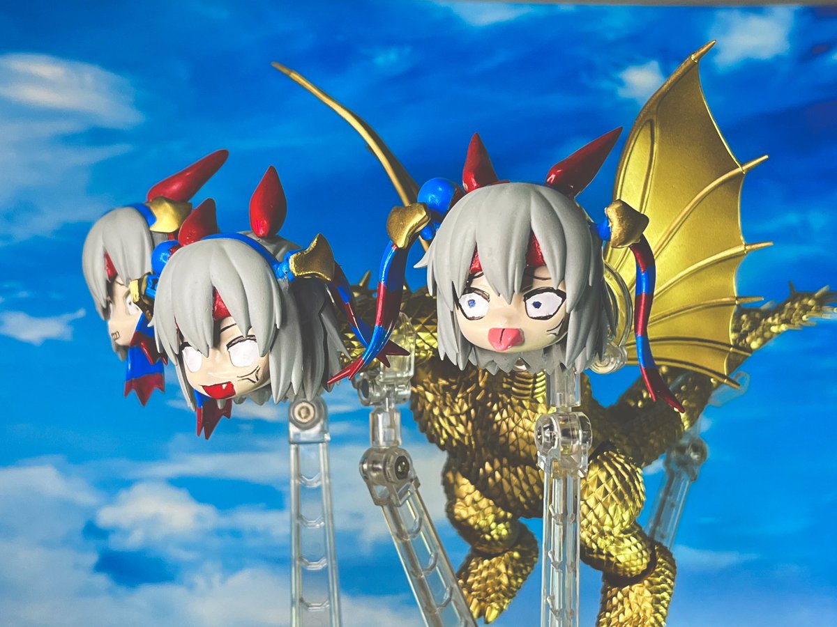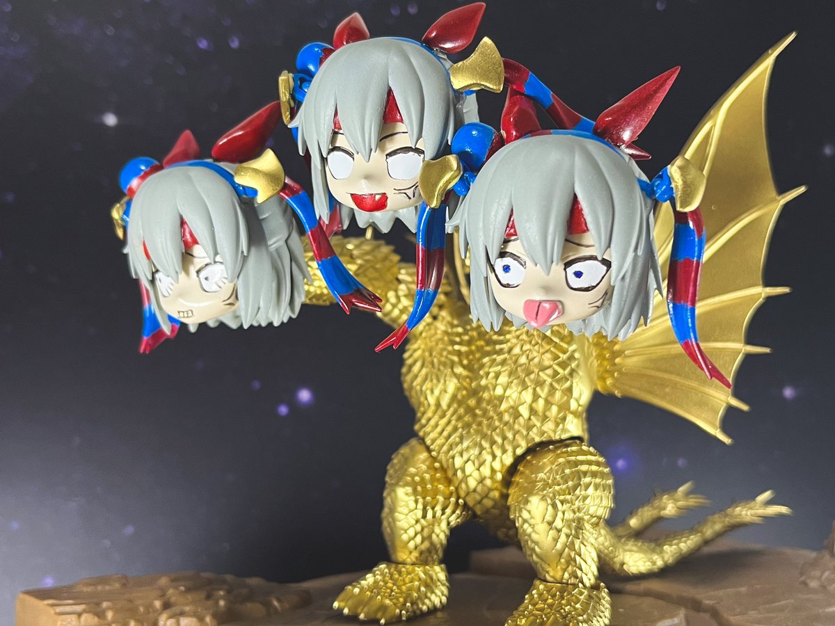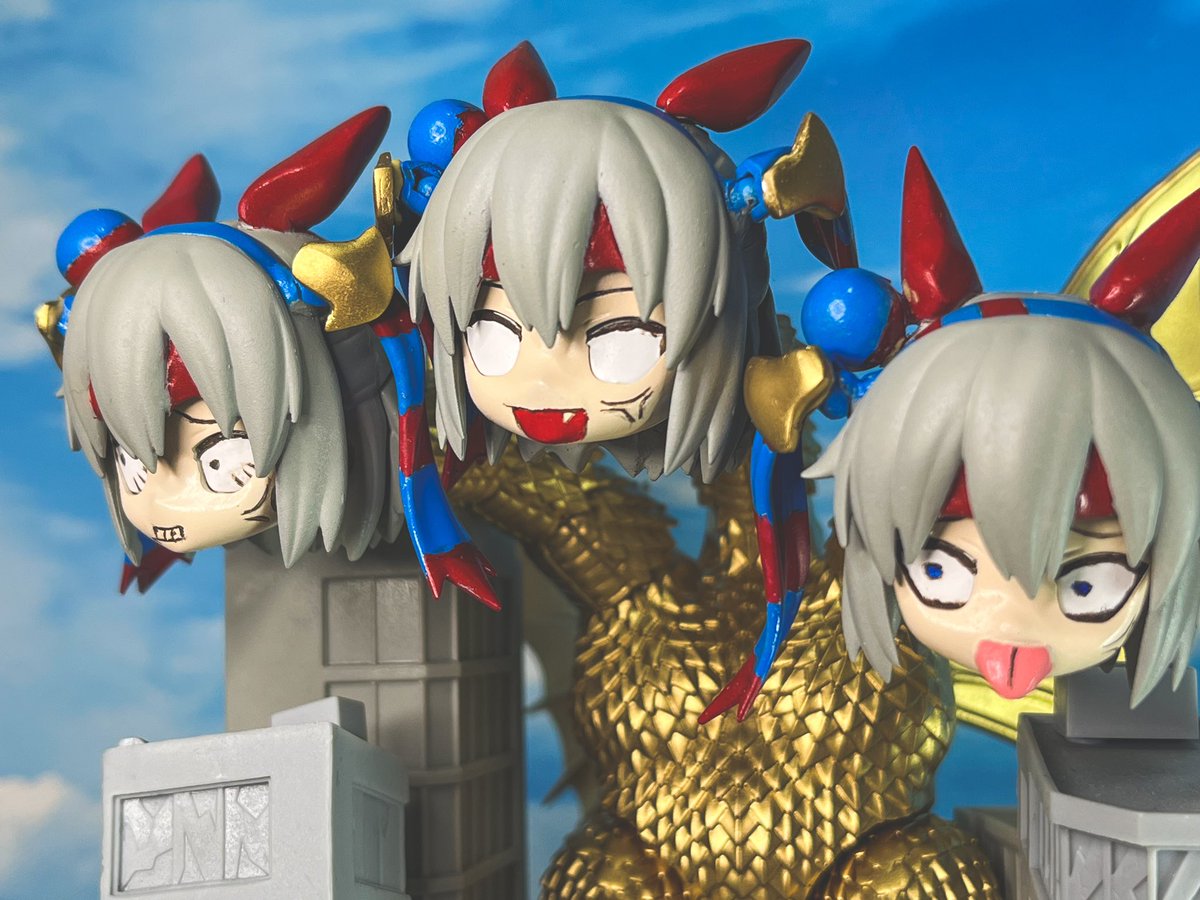 タマモギドラ 完成しました… 素材はチビマルのキングギドラとぷちりっつの沖田総司×3を使用しました 今回初めてアイリペしたけど、めちゃくちゃ難しかったです… #ウマ娘 #ウマ娘造形部