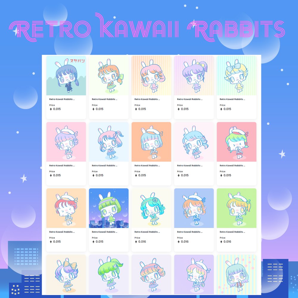 @sukehome はじめまして🐰 Retro Kawaii Rabbits 70年代80年代ファッションに身を包んだレトロでポップでかわいい手書きのうさぎです。 Retro Kawaii Rabbits ➡opensea.io/collection/r-k… #イラスト #illustration #NFT #NFTs #NFTartist #NFTJapan #80s