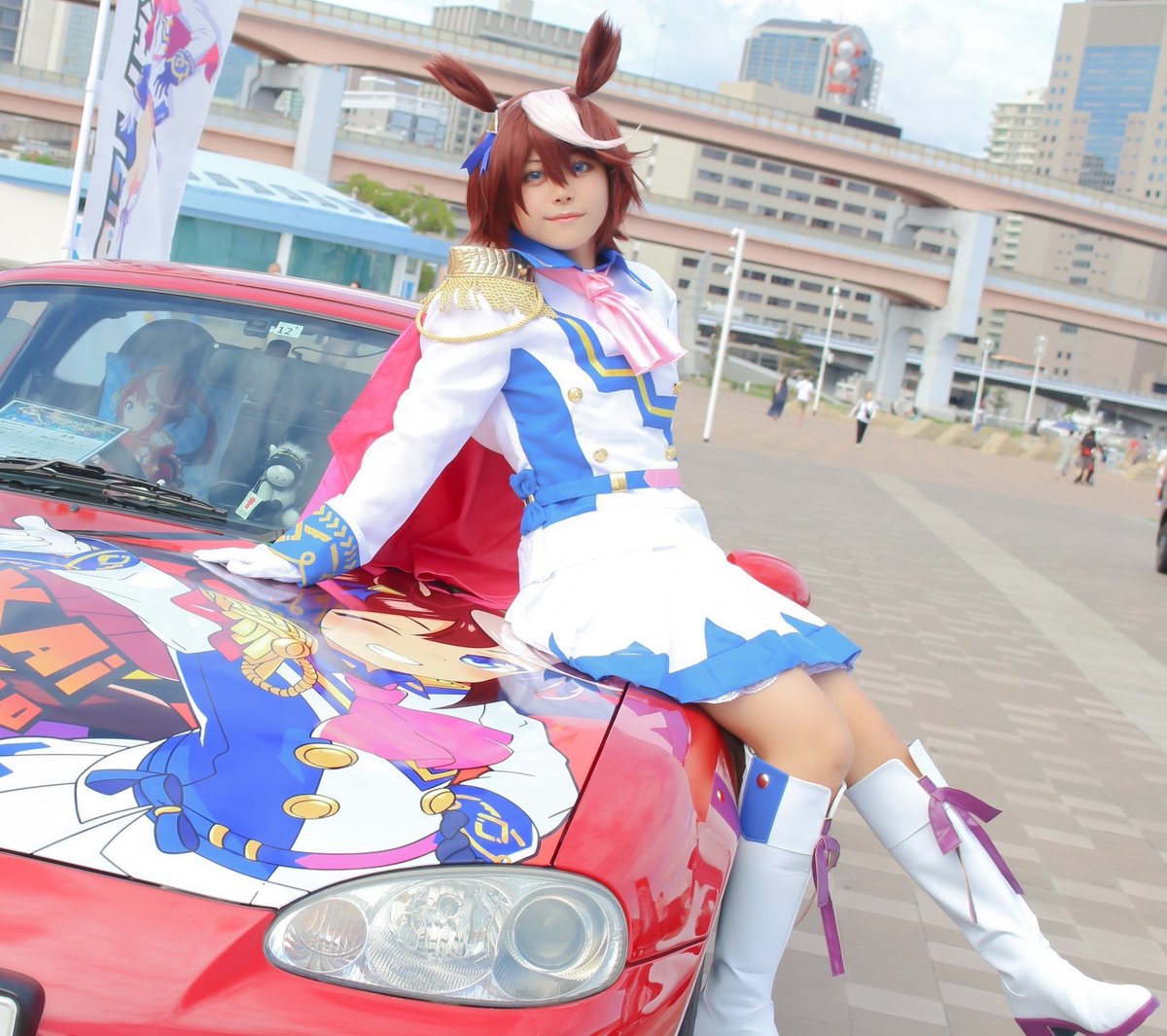 13 50 トウカイテイオー併せしました…🙏🙏 レイヤー:るるさん(@_ru_r_u) 痛車:綿貫(@waka_magica) #ウマ娘 #かみこす 21/08/26 21:31