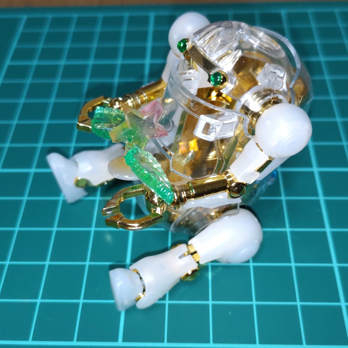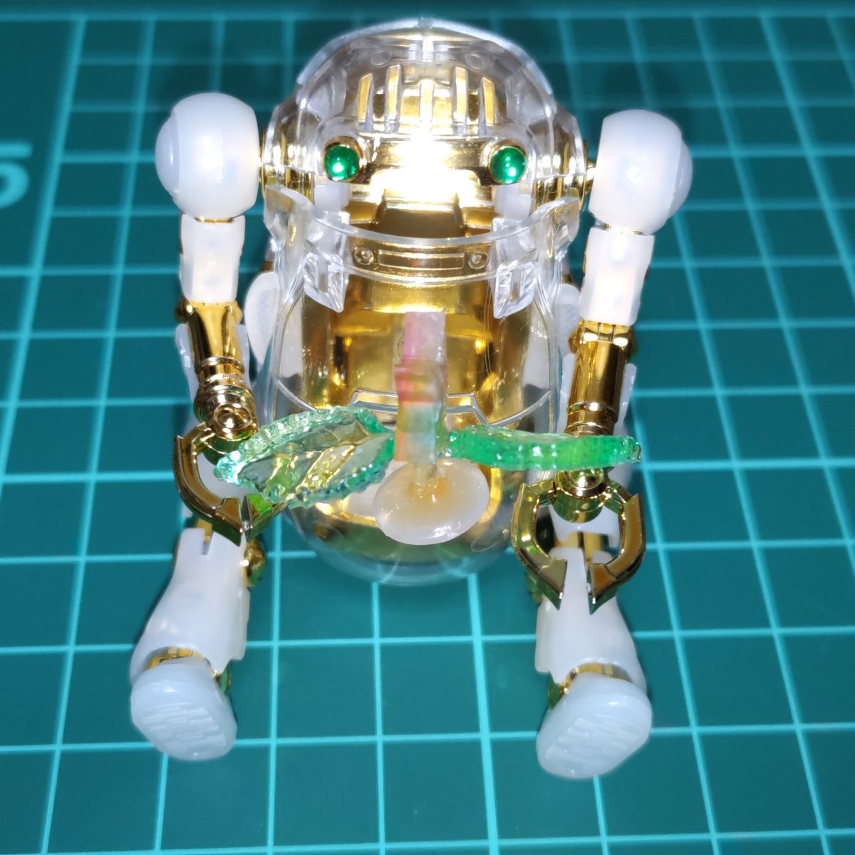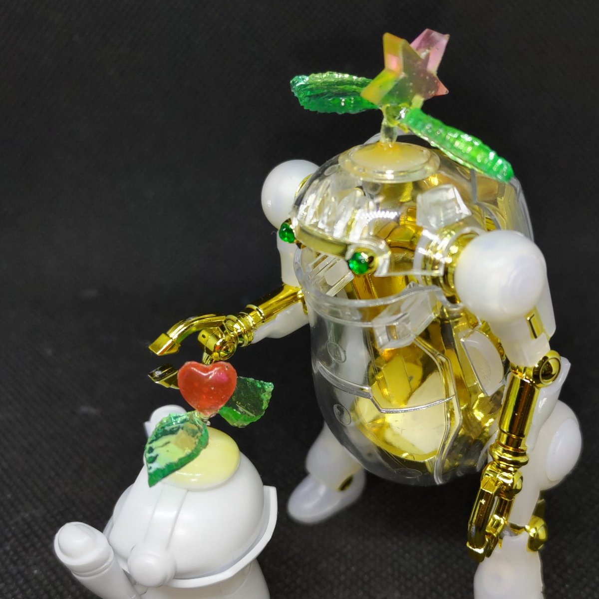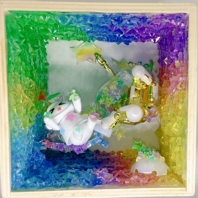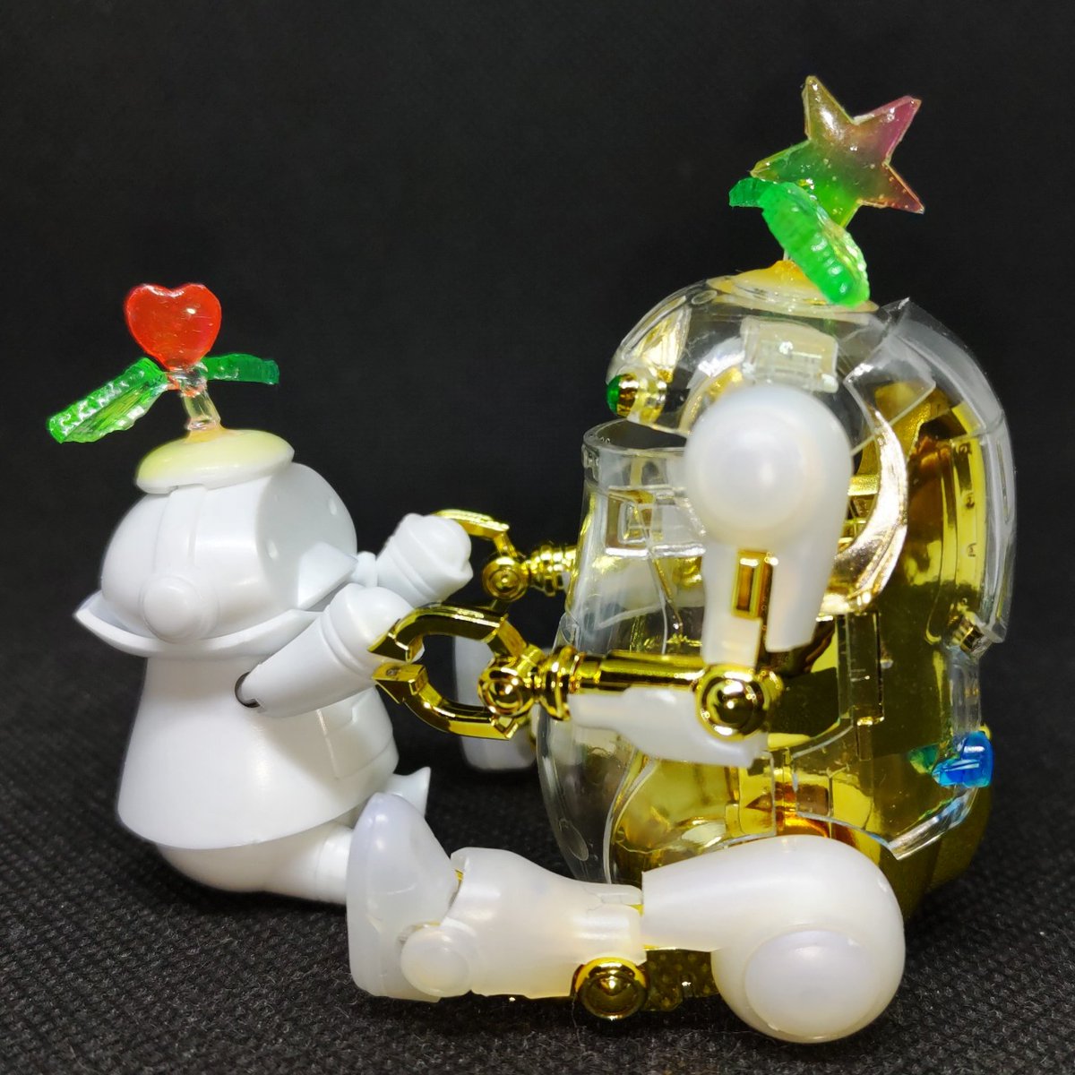 メイトさんもくっくけ完了✨ひっくり返してもビクともしません🤗 1枚目を表と考えてるけど2枚目もいいなぁ🤔 展示される時は片方からしか見えないのかな。悩む~😵💫 あとは枠にマステ貼って、OKか確認してもらいます😊 #メカトロキューブ4 #メカトロウィーゴ #メカトロメイト