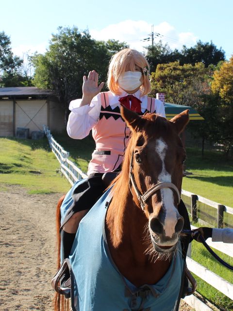 2 20 あたし‥‥ぢつは、はじめてなの(ぽっ) . . . . . . . . . . . . . . . といふことで、はじめてお馬さんに乗ったらしい〜減量のおかげで重量制限をクリアできた模様(^^ゞ #ハーベストの丘 #COSJOY 21/10/23 19:31