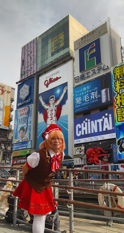 #道頓堀コスプレ祭 2018年5月開催分より どうとんぼりのらんどまーくとなってるおっきなグリコ看板を背景にぱちり☆