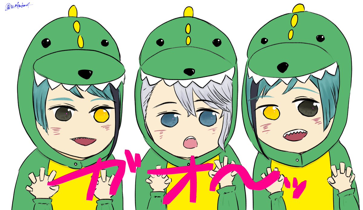 0 1 オクタ3人をショタにして恐竜の着ぐるみを着せたい人生だった 今回は個人的にアズールがお気に入り🥰 #ツイステファンアート 20/07/04 20:05