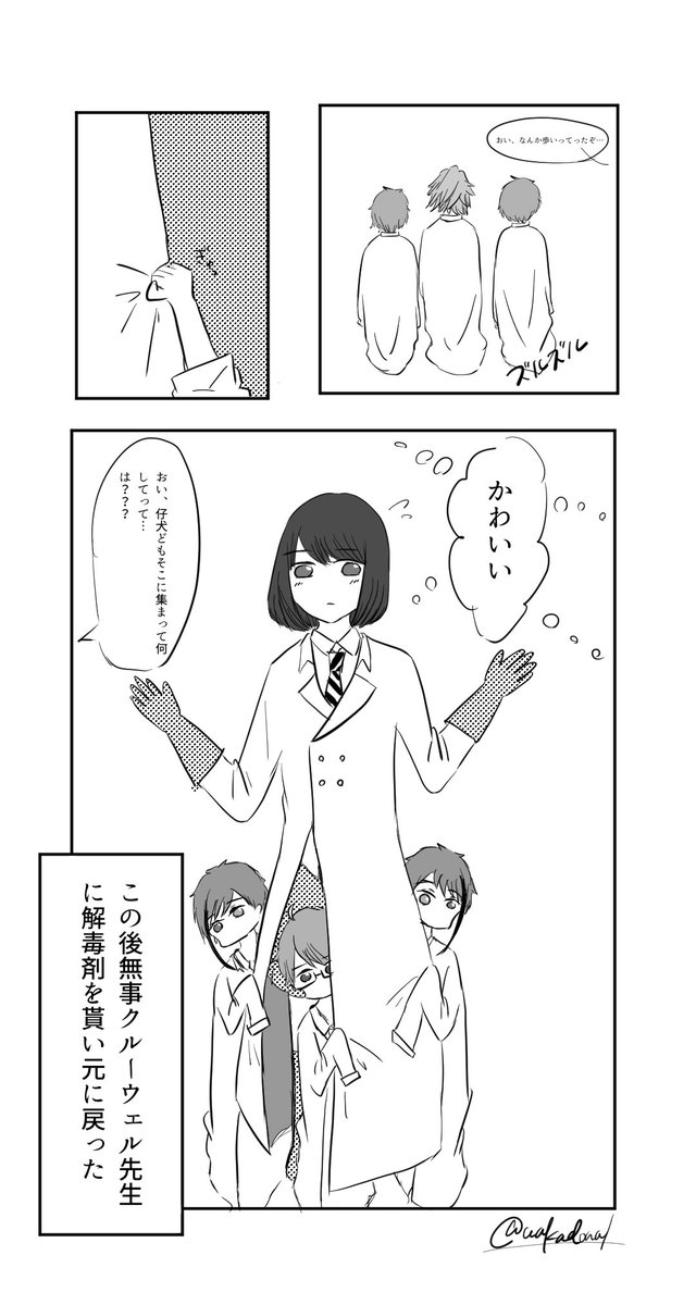 0 2 ⚠️統一試験でもらえるトレイン先生のボイスネタバレ有り クルーウェル先生と猫派か犬派で口論になるのかわいすぎない???っていう図。 #twstファンアート 21/03/06 21:59