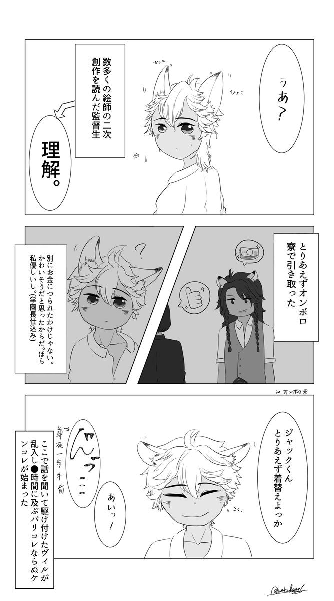 2 20 ショタセベクをお世話する監督生+マレウス(4/10) ⚠♀監督生顔出てます。 ⚠マレ監要素ないつもりですが当方マレ監も書くため神経質な方は非推奨デス。。 #twstプラス 22/02/09 18:11