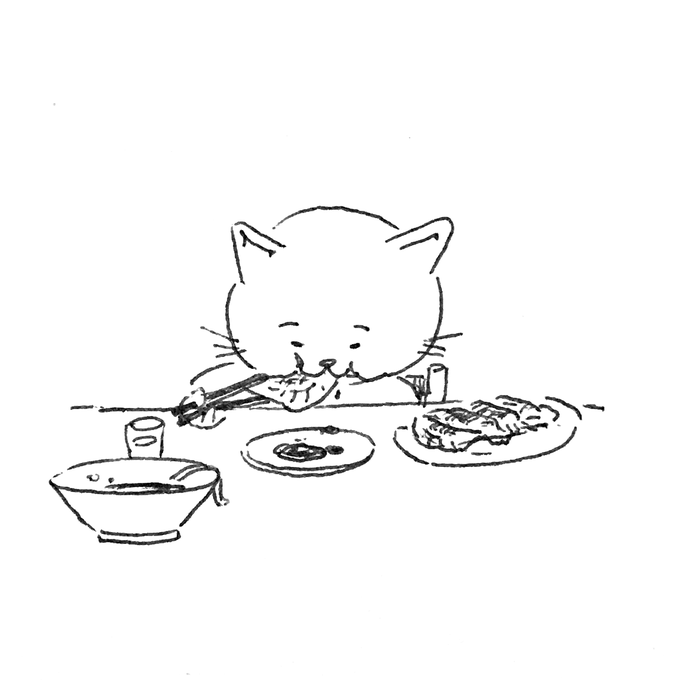 0 8 #イラスト #落書き #猫 #ネコ #にゃんこ #ラーメン #餃子 #日々描く #illustration #illust #drawing #art #cat ぎょうざ追加にゃん 22/09/15 21:39