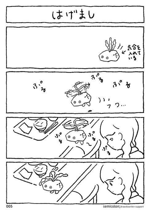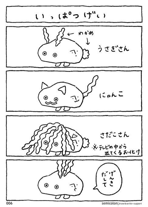 寂しい思いをしているみらいちゃんに、元気をだしてもらいたい! 渾身の力でいっぱつげいをするぞ。 実はわかめいしと、おしりのモアイさんは別人格。 がんばっているのはわかめいしで、モアイさんは一緒に盛り上げているだけなのだ。 #漫画が読めるハッシュタグ #日常 #謎の生き物