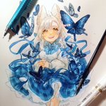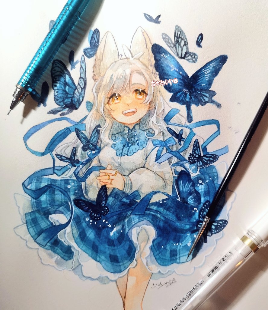 線画交換会にも参加して会場でめっちゃ急いで描きました🫣左から3番目の上下で交換しあいました〜(写真撮ったけど許可取ってなかった😶🌫️) twitter.com/aobagasou/stat…