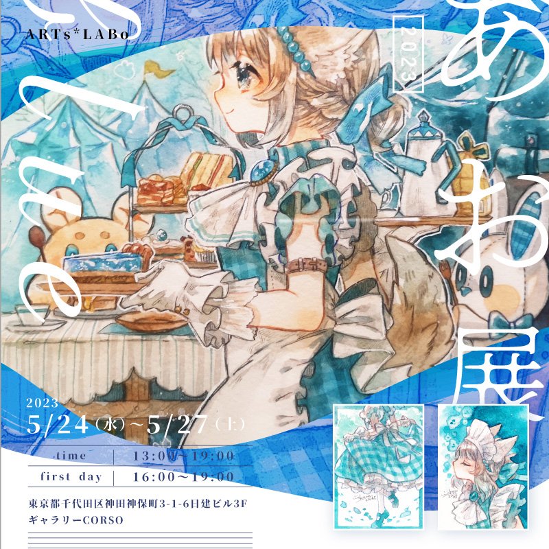 【展示告知】 #ARTsLABo 主催 「#あお展 2023」 5月24日(水)〜5月27日(土) 会場:Gallery CORSO 新作1点+ATC2点で参加させていただきます💐🫖 頒布物はございませんが、原画をたくさんの方に見て頂けたら幸いです! ▼詳細はこちら creatorsbank.com/ARTs_LABo/even…