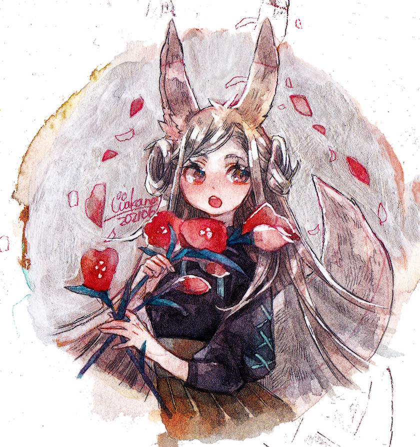 【展示告知】 4/19web-4/23sun ぎゃらりぃ あと 企画展「 #フェスチバルへは帽子を 」 新作3点+ドローイング3点で参加させていただきます🐰🥚 イースターっぽい&フェスチバルの華やかな雰囲気を描きました💐右側の作品は名刺と、ポストカードを置かせていただいています。 よろしくお願いします~