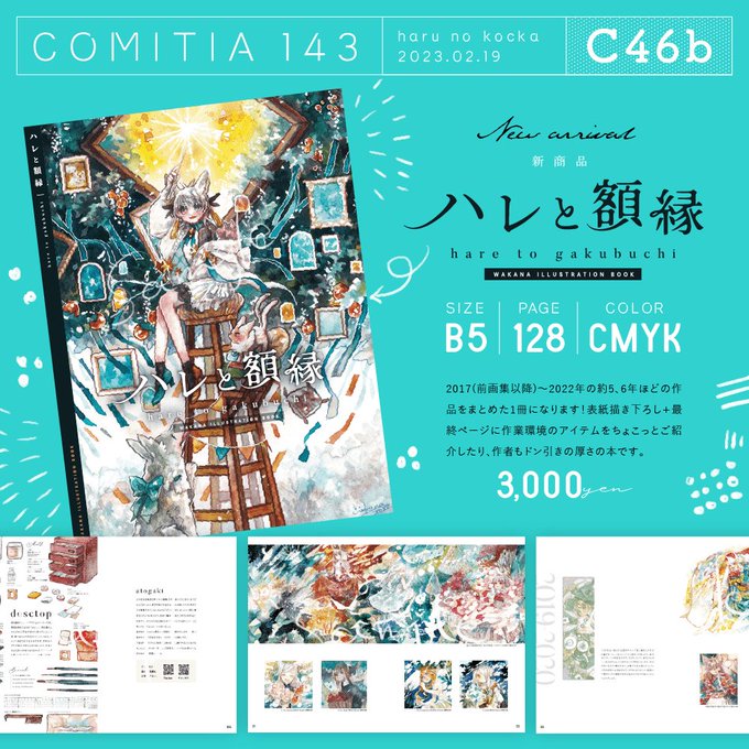 【haru no kocka | C46b】 2/19(日) #COMITIA143 大変久しぶりに関東参加します☺️ぶ厚め画集を新作に、既刊やグッズ、ドローイングとか持っていきます! ※額装原画は注意事項があります。 当日はよろしくお願いします🥳🙇