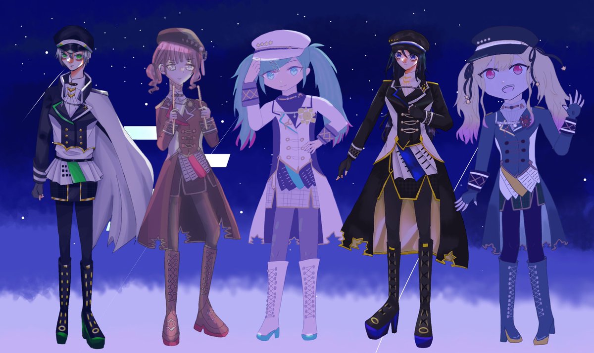 #prsk_FA teamSEKAIメンバーでLeo/need合作 初音ミク、天馬咲希→和奏(@wakana_nu_na ) 星乃一歌、日野森志歩→しゃけ(@Siyu_99331945 ) 望月穂波→あみ(Twitterなし)
