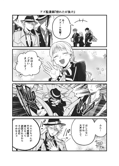 #twstプラス アズ監♀らくがき漫画 めちゃめちゃ監に惚れてる🐙先輩が一喜一憂している様子です。