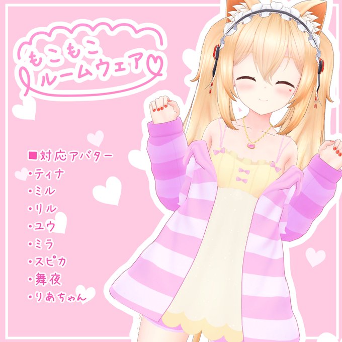 うちの子、舞夜ちゃん、りあちゃん対応のもこもこルームウェア販売開始しました~~!今回は胸揺れ、サイズ変更にも対応しています。 ファーシェーダー版のモフモフ感も良き良きだと思うので、どうぞよろしくお願いします~~~!!(wakonoatorie.booth.pm/items/4167444)