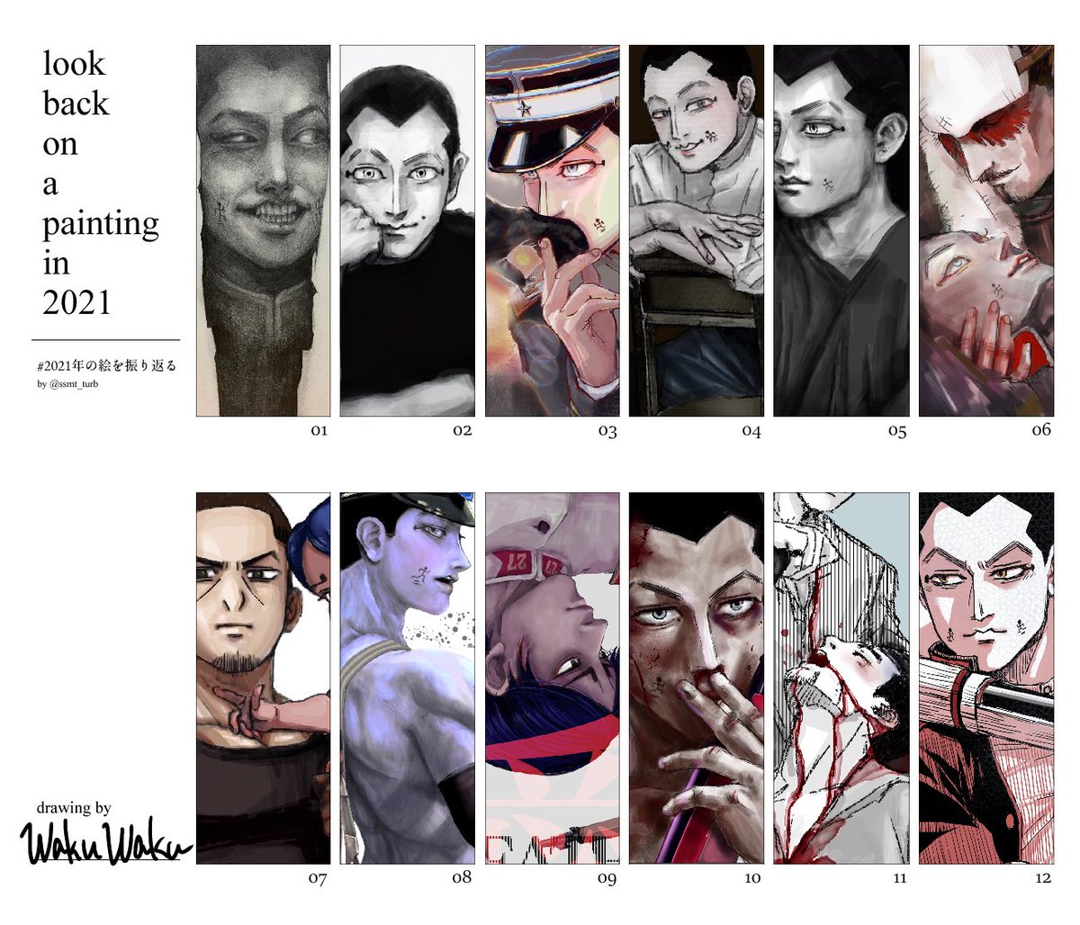 #2021年の絵を振り返る テンプレお借りしました! 9/22〜1枚目はアナログです。段々とデジタルで描くことを覚えました。 最初はiPhoneに指だけで描いてて😂 今年はイラストを描いたり、初めてイベントに行ったりと色んな事が新鮮✨😊✨めっちゃ楽しいです❣️ この歳でアニメにハマると思ってなかった笑