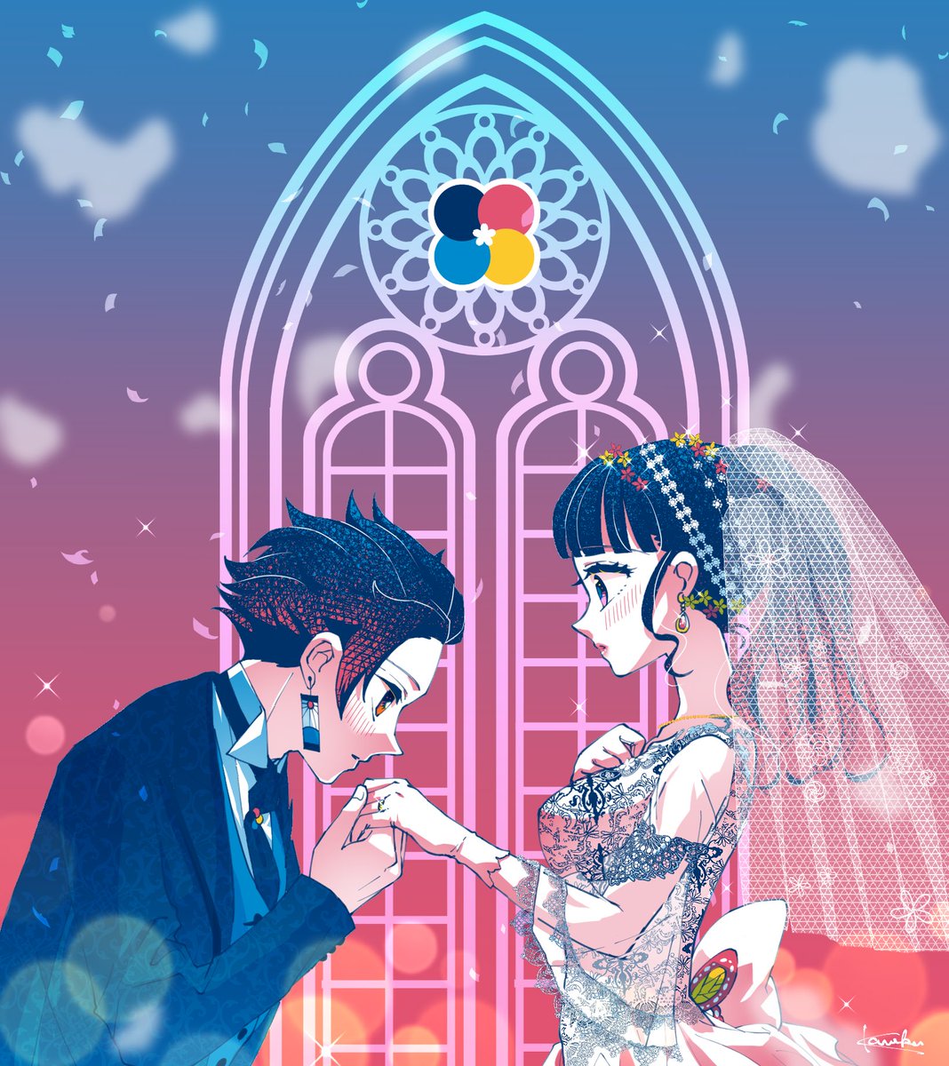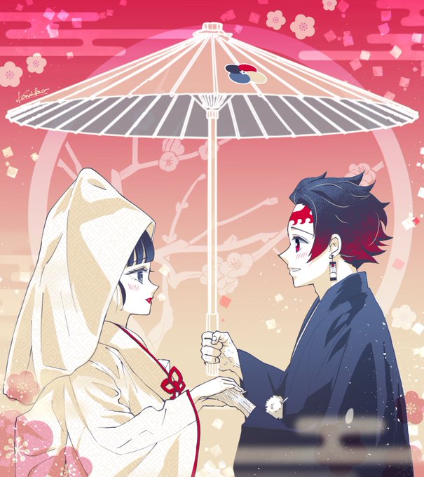 #4色で彩る炭カナ @4colortankana もう一つの落ち着きパレットでは対象軸和装で! アニメで痛々しく傷つく彼らを見る度、「穏やかで幸せな日々がはよ来てくれ!!」と思ってる😭 #炭カナジューンブライド