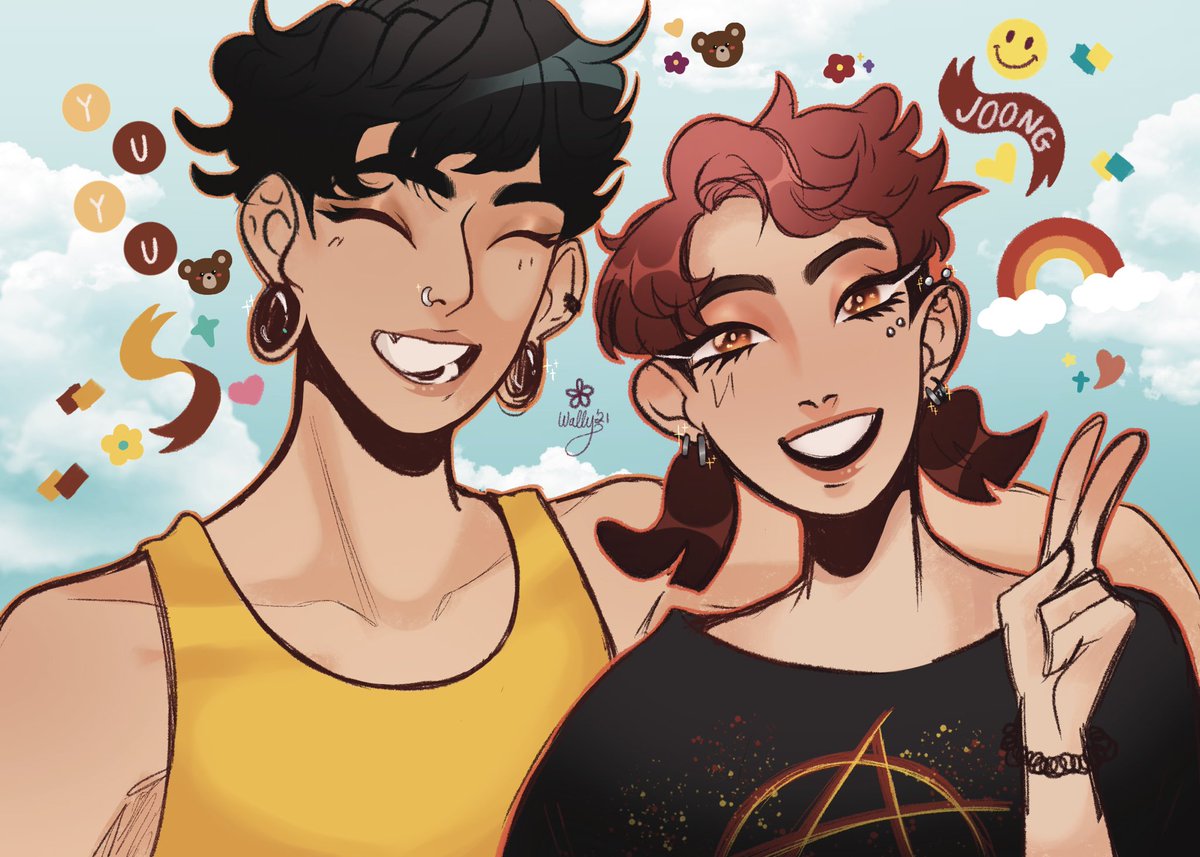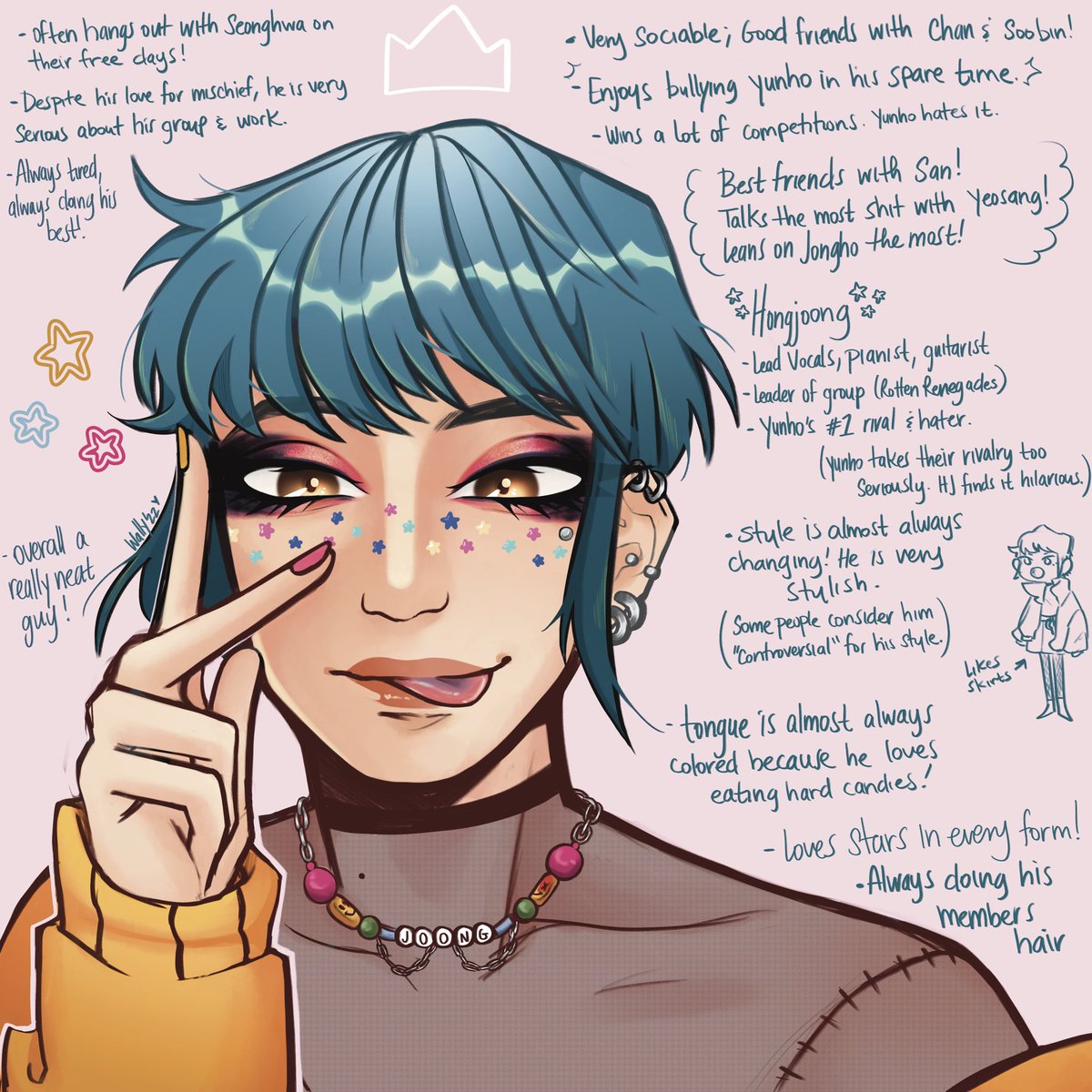 🍭[ROCK BAND AU]🍭 Hongjoong, the blue haired menace that Yunho always wants to fight. Maybe Hongjoong wants to fight him back. . . . #ATEEZfanart #HONGJOONG