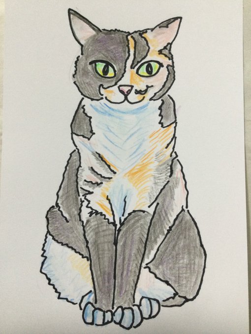FFさんの猫ちゃん🐈描かせてもらいました。 #猫 #色鉛筆とペン