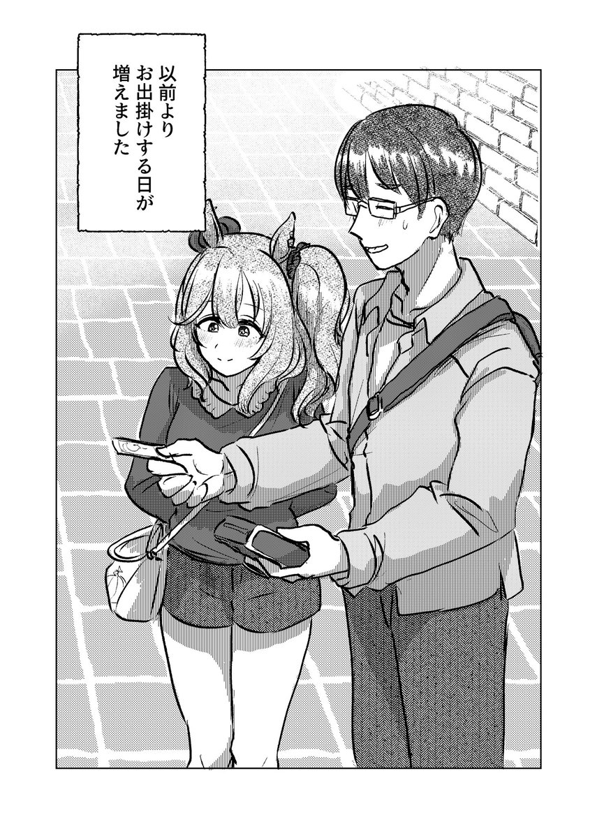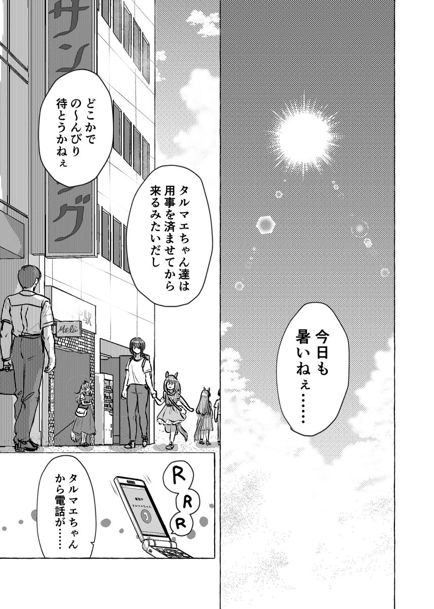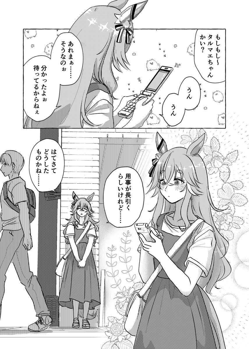 871 3969 ワンダーアキュートちゃんとガラケーと積乱雲漫画です(1/2) アストンマーチャンちゃん・コパノリッキーちゃん・ホッコータルマエちゃんも出てます #ウマ娘 23/10/06 00:56