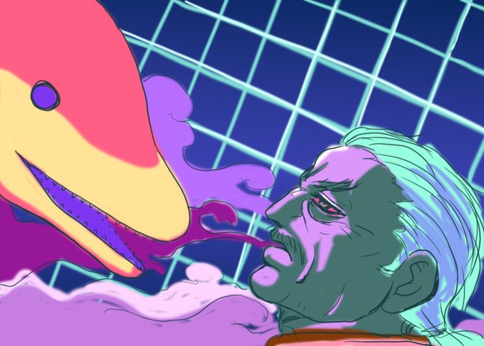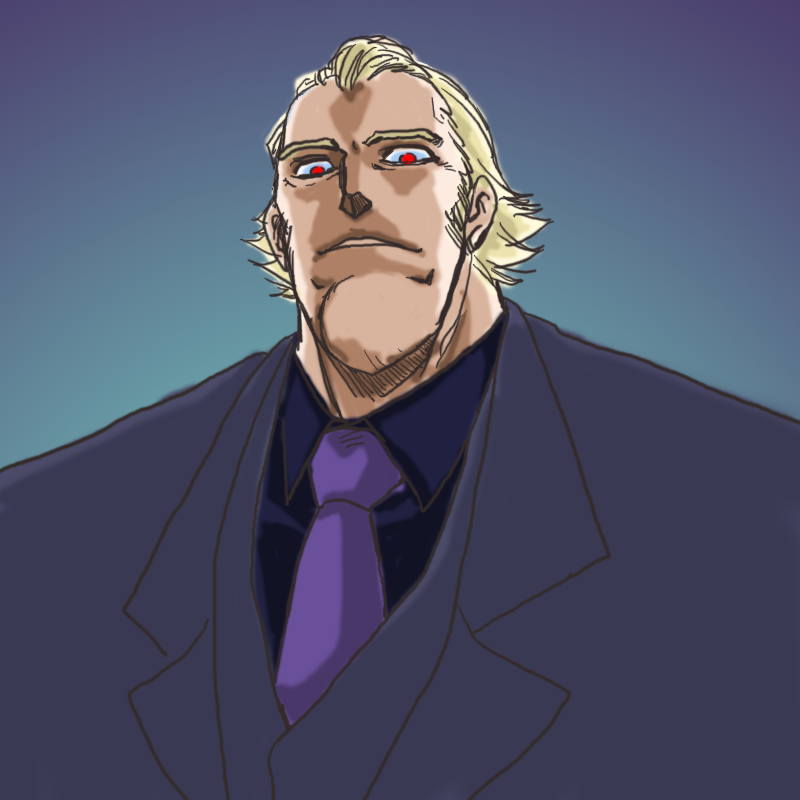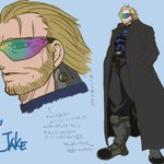 #ニンジャスレイヤー (((ジェイク……不法入国ガイジン、重サイバネ)))「身長185前後……脳内UNIXの自動翻訳により不確かな日本語……サイバネを隠すため品の無いコートとサングラス着用……」 ちゃんと色も付けました 意外とウキヨエ少ない気がするラッキー・ジェイク #ウキヨエ #イマジナリフリー