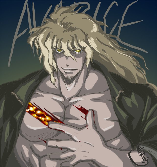 #ニンジャスレイヤー なんとこのタイミングでブラスハートさんの名鑑が追加されるとは何かの兆しか? 重大な人物ではあるのだが基本的にはサツガイ前の中ボスポジなのと能力があまりに手堅過ぎるので地味扱いされがちなのが不憫 なおこれは連載当時に描いたイマジナリブラスハートさん #ウキヨエ