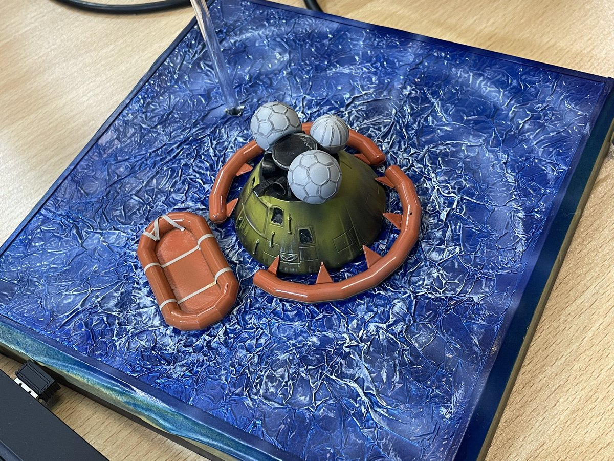 昨晩の『プラモは見てナンボです!』のご視聴ありがとうございました。 配信ではSH-3のダウンウォッシュを描きました。 海面はアルミホイルにブルー系の色を3色重ねて再現、白波は海面の凸部分にドライブラシの要領でホワイトを塗装、エアブラシで薄めたホワイトでサークル状の波紋を描いています。