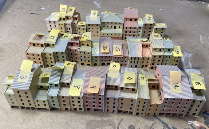 27 258 イメージを掴むため外壁を塗装した建物を初めて並べてみる。もっと色数を増やさないといけないな。 今日1日で11個…(›´ω`‹ )ゲッソリ #portofino_diorama 22/05/01 22:30