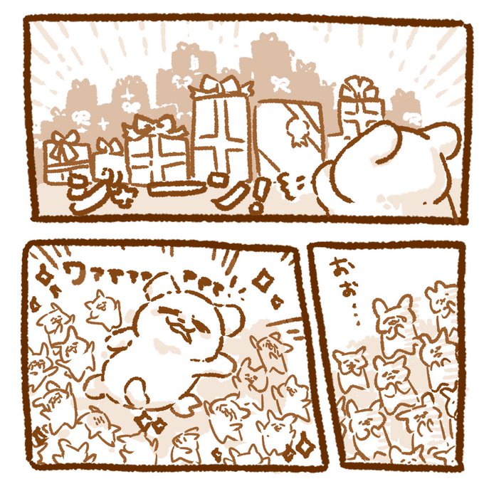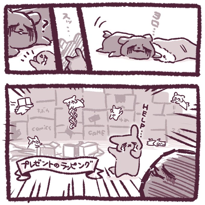 🧀176日目🧀 プレゼントのラッピングを終わらせたワン太郎 妖精たち「なんと すばらしき かた……!」 🧚♀️✨🐶✨🧚♂️ #ゆるいイラスト #illustration #漫画が読めるハッシュタグ