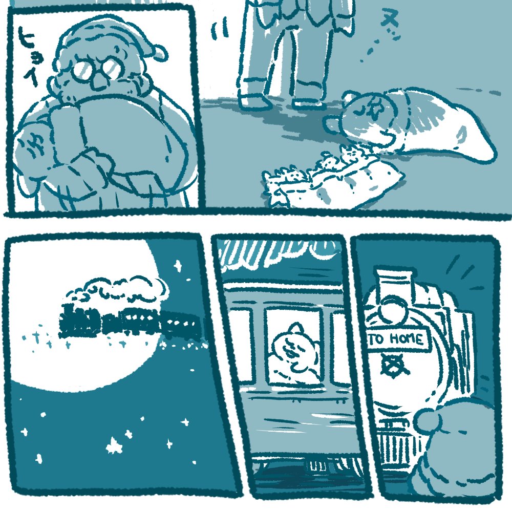 🧀180日目🧀 サンタさんに家に帰されるワン太郎 🌕🚂 ・ 。 ☆∴。 * ・゚*。★・ ・ *゚。 * ・ ゚*。・゚★。 ☆゚・。°*. ゚ 👋🎅 #ゆるいイラスト #illustration #漫画が読めるハッシュタグ