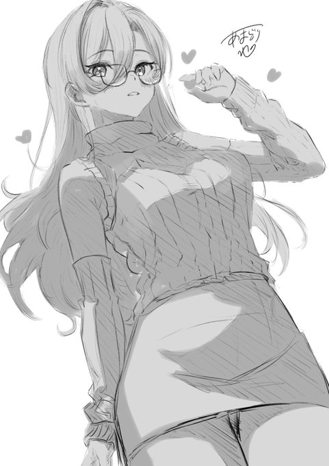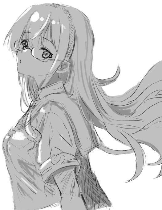 今日のラフ「ノースリーブ縦セタ(排熱加工)眼鏡時雨」 #艦これ